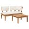 Ensemble banc et table de jardin 2 pcs Crème et marronCet ensemble de meubles de jardin modernes allie chic, praticité et simplicité, avec un design rectangulaire pour le jardin et la terrasse. Ses lignes épurées et sa fabrique en teck massif en font un choix parfait pour embellir votre espace extérieur tout en ajoutant une touche pratique, idéal comme pièce maîtresse pour des retrouvailles ou des moments de détente. Construction en teck massif Fabriqué uniquement en teck massif, cet ensemble assure durabilité et résistance, peu importe les conditions extérieures. La solidité naturelle du teck en fait un bon investissement pour donner du style à vos espaces extérieurs. Design pratique Avec sa forme rectangulaire moderne, il s'adapte facilement aux jardins ou terrasses, s'intégrant sans soucis dans divers styles extérieurs. Que vous organisiez une fête ou que vous souhaitiez juste vous relaxer, il est tout aussi efficace dans toutes les situations. Assemblage facile Conçu pour le confort de l'utilisateur, il s'assemble avec deux personnes et un tournevis. Cette simplicité permet de passer plus de temps à profiter de l'extérieur et moins à se battre avec l'installation, rendant la mise à jour de votre extérieur plus rapide. Astuce naturelle Le teck massif n'est pas seulement fonctionnel, il ajoute aussi un aspect relaxant et organique à votre jardin. Sa couleur marron naturelle complète différents styles de déco extérieure. Solidité Avec ses pieds cylindriques en teck massif, il assure un bon soutien à l'ensemble. Ce design offre robustesse et une élégance simple, parfait pour compléter l'esthétique moderne du meuble. Bon à savoir : Maximum 110 kg par siège.