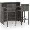 Ensemble de bar de jardin 3 pcs GrisCet ensemble de bar de jardin a un design élégant et sera le point de mire de votre jardin, patio ou terrasse. Fabriqué en résine tressée résistante aux intempéries et imperméable, cet ensemble de bar est facile à nettoyer, résistant à l'usure et adapté à une utilisation quotidienne. Le cadre en acier enduit de poudre rend la table et les tabourets très robustes et durables. Grace à la construction légère, tous les articles sont faciles à déplacer. Remarque : afin de prolonger la durée de vie des meubles d'extérieur, nous vous recommandons de les protéger avec une housse imperméable. Maximum 110 kg par siège.