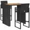 Ensemble de bar de jardin 3 pcs sans coussins noir poly rotinCet ensemble de bar de jardin tendance, combinant à la fois style et fonctionnalité, est sûrement destiné à être la pièce maîtresse de votre jardin, terrasse et de tout autre espace de vie. Matériau résistant aux intempéries : la résine tressée, également connue sous le nom de rotin poly, résiste aux intempéries et est facile à nettoyer. Elle reste belle à l'extérieur pendant une longue période. Elle offre une excellente qualité, commodité et un aspect esthétique. Assise confortable : le tabouret de bar est conçu avec un dossier et un repose-pieds intégré pour vous offrir une assise confortable. Le coussin de siège bien rembourré offre un confort ultime pendant votre temps assis. Cadre robuste et stable : les cadres en acier enduit de poudre rendent l'ensemble de pub robuste et stable pour une utilisation quotidienne à l'extérieur. Applications larges : la table et le tabouret de bar, avec leur design remarquable, créent un aspect général agréable qui s'intègre sans effort dans n'importe quel décor. Bon à savoir : Pour faciliter au maximum le montage, chaque produit est livré avec des instructions. Remarque : Pour que vos meubles d'extérieur restent beaux, nous vous recommandons de les protéger avec une housse imperméable. Maximum 110 kg par siège.