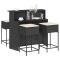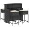 Ensemble de bar de jardin 5 pcs avec coussins noir poly rotinCet ensemble de bar de jardin tendance, combinant à la fois style et fonctionnalité, est sûrement destiné à être la pièce maîtresse de votre jardin, terrasse et de tout autre espace de vie. Matériau durable : la résine tressée, également connue sous le nom de poly rotin, est un matériau synthétique solide et nécessitant peu d'entretien qui ressemble au rotin naturel. Elle est légère, facile à nettoyer et couramment utilisée pour les meubles d'extérieur en raison de sa durabilité et de ses propriétés de résistance aux intempéries. Expérience d'assise confortable : ce mobilier d'extérieur, doté de coussins épais, offre une expérience d'assise confortable. Housse amovible et lavable : ces coussins de siège sont dotés de housses amovibles pour un lavage et un entretien faciles. Cadre robuste et stable : le cadre en acier enduit de poudre assure la solidité et la stabilité du meuble de jardin pour une utilisation quotidienne à l'extérieur. Bon à savoir : Pour que vos meubles d'extérieur restent beaux, nous vous recommandons de les protéger avec une housse imperméable.