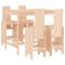 Ensemble de bar de jardin 5 pcs bois de pin massifPrenez une gorgée de votre boisson préférée ou profitez d'un bon repas avec votre famille et vos amis autour de cet ensemble de bar de jardin en bois ! Bois de pin massif : cet ensemble de bar est fabriqué en bois de pin massif. le bois de pin massif est un matériau naturel magnifique. Le bois de pin a un grain droit et les noeuds donnent au matériau son aspect caractéristique et rustique. Dessus robuste : la table de bar de l'ensemble de pub est dotée d'un dessus robuste, parfait pour placer vos boissons, vos aliments et autres objets décoratifs. Assise confortable : le dossier et le repose-pieds du tabouret de bar en bois offrent une assise confortable pour détendre votre dos et vos jambes. Nombreuses applications : avec son design minimaliste, l'ensemble de bar de terrasse peut être intégré dans n'importe quel coin du jardin, terrasse, balcon, jardin, etc. Bon à savoir : Pour que vos meubles d'extérieur restent beaux, nous vous recommandons de les protéger avec une housse imperméable. Maximum 110 kg par siège.