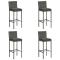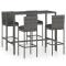 Ensemble de bar de jardin 5 pcs et coussins Résine tressée GrisCet élégant ensemble de bar de jardin offre un endroit agréable et confortable afin que vous puissiez profiter du temps avec votre famille et vos amis. Cette table de comptoir dispose d'un cadre en acier enduit de poudre recouvert de résine tressée résistante à l'eau, assurant des années d'utilisation à l'extérieur. De plus, le dessus de table en verre trempé facilite le nettoyage. Les tabourets ont un solide cadre en acier et sont fabriqués en résine tressée résistante aux intempéries, ce qui garantit leur stabilité et leur facilité de déplacement. Le coussin d'assise et le repose-pied intégré ajoutent également au confort d'assise du tabouret. Remarque : afin de prolonger la durée de vie des meubles d'extérieur, nous vous recommandons de les protéger avec une housse imperméable. Maximum 110 kg par siège. Soyez conscient du risque de feu ouvert et d'autres sources de forte chaleur à proximité de l'appareil.
