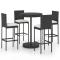 Ensemble de bar de jardin 5 pcs et coussins Résine tressée NoirCet ensemble élégant de bar de jardin vous permet de passer des moments agréables et confortables avec votre famille et vos amis. La table de bar est soutenue par un cadre en acier enduit de poudre, ce qui la rend stable et robuste. Le dessus de table rond est idéal pour placer des boissons, de la nourriture ou des objets décoratifs. Les tabourets ont une construction solide de cadre en acier et sont faits de résine tressée résistante aux intempéries, assurant la stabilité et sont faciles à déplacer. Le coussin et le repose-pied ajoutent également du confort d'assise supplémentaire au tabouret. La housse de coussin en polyester avec fermeture éclair dissimulée le rend facile à nettoyer. Maximum 110 kg par siège. Soyez conscient du risque de feu ouvert et d'autres sources de forte chaleur à proximité de l'appareil.