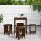 Ensemble de bar de jardin 5 pcs marron miel bois de pin massifPrenez une gorgée de votre boisson préférée ou profitez d'un bon repas avec votre famille et vos amis autour de cet ensemble de bar de jardin en bois ! Bois de pin massif : cet ensemble de bar est fabriqué en bois de pin massif. le bois de pin massif est un matériau naturel magnifique. Le bois de pin a un grain droit et les noeuds donnent au matériau son aspect caractéristique et rustique.Dessus robuste : la table de bar de l'ensemble de pub est dotée d'un dessus robuste, parfait pour placer vos boissons, vos aliments et autres objets décoratifs.Design pratique : ces tabourets de bar en bois n'ont pas de dossier, vous pouvez donc vous asseoir confortablement de chaque côté des tabourets et les ranger sous le comptoir lorsqu'ils ne sont pas utilisés.Nombreuses applications : avec son design minimaliste, l'ensemble de bar de terrasse peut être intégré dans n'importe quel coin du jardin, terrasse, balcon, jardin, etc. Bon à savoir :Pour que vos meubles d'extérieur restent beaux, nous vous recommandons de les protéger avec une housse imperméable. Maximum 110 kg par siège.