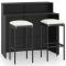 Ensemble de bar de jardin avec coussins 3 pcs NoirCet ensemble de bar de jardin a un design élégant et sera le point de mire de votre jardin, patio ou terrasse. Fabriqué en résine tressée résistante aux intempéries et imperméable, cet ensemble de bar est facile à nettoyer, résistant à l'usure et adapté à une utilisation quotidienne. Le cadre en acier enduit de poudre rend la table et les tabourets très robustes et durables. Grace à la construction légère, tous les articles sont faciles à déplacer. Les coussins de siège amovibles et épais sont très confortables. Les housses des coussins avec fermetures éclair peuvent être facilement enlevées et lavées. Remarque : afin de prolonger la durée de vie des meubles d'extérieur, nous vous recommandons de les protéger avec une housse imperméable. Maximum 110 kg par siège. Soyez conscient du risque de feu ouvert et d'autres sources de forte chaleur à proximité de l'appareil.