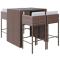 Ensemble de bar de jardin avec coussins 5 pcs marron poly rotinCet ensemble de bar de jardin tendance, combinant à la fois style et fonctionnalité, est sûrement destiné à être la pièce maîtresse de votre jardin, terrasse et de tout autre espace de vie. Matériau résistant aux intempéries : la résine tressée, également connue sous le nom de rotin poly, résiste aux intempéries et est facile à nettoyer. Elle reste belle à l'extérieur pendant une longue période. Elle offre une excellente qualité, commodité et un aspect esthétique. Siège confortable : le tabouret de bar est conçu avec un repose-pied, un dossier et des accoudoirs pour vous offrir une expérience d'assise confortable. Les coussins souples du siège et du dossier ajoutent encore au confort. Dessus en verre trempé : le dessus est en verre trempé, ce qui le rend facile à nettoyer. De plus, il offre un excellent support pour placer vos boissons, collations et vos décorations préférées. Cadre robuste et stable : les cadres en acier enduit de poudre rendent l'ensemble de pub robuste et stable pour une utilisation quotidienne à l'extérieur. Applications larges : la table et les tabourets de bar, avec leur design remarquable, créent un aspect général agréable qui s'intègre sans effort dans n'importe quel décor. Bon à savoir : Pour que vos meubles d'extérieur restent beaux, nous vous recommandons de les protéger avec une housse imperméable. Maximum 110 kg par siège. Soyez conscient du risque de feu ouvert et d'autres sources de forte chaleur à proximité de l'appareil.