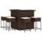 Ensemble de bar de jardin avec coussins 5 pcs marron poly rotinCet ensemble de bar de jardin tendance, combinant à la fois style et fonctionnalité, est sûrement destiné à être la pièce maîtresse de votre jardin, terrasse et de tout autre espace de vie. Matériau durable : la résine tressée, également connue sous le nom de poly rotin, est un matériau synthétique solide et nécessitant peu d'entretien qui ressemble au rotin naturel. Elle est légère, facile à nettoyer et couramment utilisée pour les meubles d'extérieur en raison de sa durabilité et de ses propriétés de résistance aux intempéries.Expérience d'assise confortable : ce mobilier d'extérieur, doté de coussins épais, offre une expérience d'assise confortable.Housse amovible et lavable : ces coussins de siège sont dotés de housses amovibles pour un lavage et un entretien faciles.Cadre robuste et stable : le cadre en acier enduit de poudre assure la solidité et la stabilité du meuble de jardin pour une utilisation quotidienne à l'extérieur. Bon à savoir :Pour que vos meubles d'extérieur restent beaux, nous vous recommandons de les protéger avec une housse imperméable.