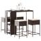 Ensemble de bar de jardin avec coussins 5 pcs marron poly rotinCet ensemble de bar de jardin tendance, combinant à la fois style et fonctionnalité, est sûrement destiné à être la pièce maîtresse de votre jardin, terrasse et de tout autre espace de vie. Matériau durable : la résine tressée, également connue sous le nom de poly rotin, est un matériau synthétique solide et nécessitant peu d'entretien qui ressemble au rotin naturel. Elle est légère, facile à nettoyer et couramment utilisée pour les meubles d'extérieur en raison de sa durabilité et de ses propriétés de résistance aux intempéries.Expérience d'assise confortable : ce mobilier d'extérieur, doté de coussins épais, offre une expérience d'assise confortable.Housse amovible et lavable : ces coussins de siège sont dotés de housses amovibles pour un lavage et un entretien faciles.Cadre robuste et stable : le cadre en acier enduit de poudre assure la solidité et la stabilité du meuble de jardin pour une utilisation quotidienne à l'extérieur. Bon à savoir :Pour que vos meubles d'extérieur restent beaux, nous vous recommandons de les protéger avec une housse imperméable.
