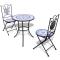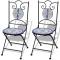 Ensemble de bistro 3 pcs Carreaux céramiques Bleu et blancAjoutez une touche romantique à votre jardin, terrasse ou balcon avec cet ensemble de bistrot en mosaïque. Ce sera un grand plaisir de discuter avec vos amis ou de prendre une tasse de thé tout en vous relaxant sur cet ensemble de mobilier de jardin décoratif et fonctionnel. Grâce à son cadre en fer enduit de poudre fort, cet ensemble est robuste et durable. Grâce au dessus de table et aux sièges en carreaux de céramique imperméables à l'eau, cet ensemble est facile à nettoyer. La livraison comprend 1 table et 2 chaises. Veuillez noter que cet ensemble ne convient pas à l'extérieur part temps froid. Maximum 110 kg par siège.