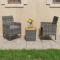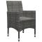 Ensemble de bistro 3 pcs Résine tressée et bois d'acacia GrisÉgayez votre cour arrière avec cet ensemble de bistro de 3 pièces et rendez l'extérieur de votre maison tout aussi accueillant que l'intérieur ! Il est idéal pour le petit balcon, la terrasse, la cour arrière, la véranda et tout autre espace extérieur ! Dotées d'un cadre en acier enduit de poudre recouvert de résine tressée résistante aux intempéries avec protection UV, la table et les chaises garantissent des années d'utilisation à l'extérieur. Les chaises sont conçues dans une forme plus ergonomique pour un confort maximum. Des coussins sont inclus pour plus de soutien. Le dessus de table est en bois d'acacia massif avec une finition à l'huile, qui résiste aux intempéries et est durable. Le savoir-faire et les belles veines du bois font que chaque meuble soit légèrement différent l'un de l'autre. Maximum 110 kg par siège. Soyez conscient du risque de feu ouvert et d'autres sources de forte chaleur à proximité de l'appareil.