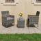 Ensemble de bistro 3 pcs Résine tressée et verre trempé GrisÉgayez votre cour arrière avec cet ensemble de bistro de 3 pièces et rendez l'extérieur de votre maison tout aussi accueillant que l'intérieur ! Il est idéal pour le petit balcon, la terrasse, la cour arrière, la véranda et tout autre espace extérieur ! Dotées d'un cadre en acier enduit de poudre recouvert de résine tressée résistante aux intempéries avec protection UV, la table et les chaises garantissent des années d'utilisation en plein air. Les chaises sont conçues dans une forme plus ergonomique pour un confort maximum. Des coussins sont inclus pour plus de soutien. Le dessus de table est en verre trempé renforcé avec support fort, facile à nettoyer et à entretenir.