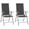 Ensemble de bistro 3 pcs aluminium et textilène argentéCet ensemble de bistro au design élégant et intemporel offre un coin salon confortable dans le jardin ou sur le patio. Le cadre en aluminium enduit de poudre rend les fauteuils très robustes et durables. Les chaises de jardin ont un dessus en textilène doux au toucher et résistant aux intempéries et peuvent être réglées en 7 positions, de sorte que vous puissiez toujours trouver la position assise la plus confortable. Fabriquée en acier et en verre, la table est bien conçue et est idéale pour placer des aliments, des boissons ou même des plantes en pot. Vous pouvez également l'utiliser comme une table à café ou à thé. En outre, elle est également facile à nettoyer avec un chiffon humide. Remarque : afin de prolonger la durée de vie des meubles d'extérieur, nous vous recommandons de les protéger avec une housse imperméable. Maximum 110 kg par siège.
