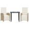 Ensemble de bistro 3 pcs avec coussins beige résine tresséeSavourez une tasse de café ou discutez avec votre famille et vos amis dans le jardin, l'arrière-cour ou sur le balcon avec cet ensemble de bistro confortable ! Matériau durable : la résine tressée, également connue sous le nom de poly rotin, est un matériau synthétique solide et nécessitant peu d'entretien qui ressemble au rotin naturel. Il est léger, facile à nettoyer et couramment utilisé pour les meubles d'extérieur en raison de sa durabilité et de ses propriétés de résistance aux intempéries. Dossier et repose-pied réglables : ce siège de jardin est doté d'une poignée. Vous pouvez régler le dossier et le repose-pied dans n'importe quelle position en tirant sur la poignée, et les remettre rapidement dans leur position initiale. Expérience d'assise confortable : ce mobilier d'extérieur, doté de coussins épais, offre une expérience d'assise confortable. Housse amovible et lavable : ces coussins de siège sont dotés de housses amovibles pour un lavage et un entretien faciles. Les coussins de dossier ont un rabat à l'arrière pour une fixation facile aux dossiers. Dessus en verre : le dessus de la table d'extérieur est fabriqué en verre trempé solide et durable, ce qui le rend facile à nettoyer avec un chiffon humide et ajoute une touche d'élégance à votre espace extérieur. Bon à savoir : Pour que vos meubles d'extérieur restent beaux, nous vous recommandons de les protéger avec une housse imperméable. Maximum 110 kg par siège. Soyez conscient du risque de feux ouverts et d'autres sources de forte chaleur à proximité du produit.