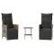 Ensemble de bistro 3 pcs avec coussins gris résine tresséeSavourez un café ou discutez avec votre famille et vos amis dans le jardin, l'arrière-cour ou sur le balcon avec cet ensemble de bistro confortable ! Matériau durable : la résine tressée, également connue sous le nom de poly rotin, est un matériau synthétique solide et nécessitant peu d'entretien qui ressemble au rotin naturel. Il est léger, facile à nettoyer et couramment utilisé pour les meubles d'extérieur en raison de sa durabilité et de ses propriétés de résistance aux intempéries.Dossier et repose-pied réglables : ce siège de jardin est doté d'une poignée. Vous pouvez régler le dossier et le repose-pied dans n'importe quelle position en tirant sur la poignée. Vous pouvez également remettre rapidement le dossier et le repose-pieds dans leur position initiale avec la poignée.Expérience d'assise confortable : cet ensemble de meubles d'extérieur, doté de coussins épais, offre une expérience d'assise confortable.Housse amovible et lavable : ces coussins de siège sont dotés de housses amovibles pour un lavage et un entretien faciles. Les coussins de dossier ont un rabat à l'arrière pour une fixation facile aux dossiers.Cadre robuste et stable : le cadre en acier enduit de poudre assure la solidité et la stabilité du meuble de jardin pour une utilisation quotidienne à l'extérieur. Bon à savoir :Pour que vos meubles d'extérieur restent beaux, nous vous recommandons de les protéger avec une housse imperméable.