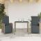 Ensemble de bistro 3 pcs avec coussins gris résine tresséeSavourez une tasse de café ou discutez avec votre famille et vos amis dans le jardin, l'arrière-cour ou sur le balcon avec cet ensemble de bistro confortable ! Matériau durable : la résine tressée, également connue sous le nom de poly rotin, est un matériau synthétique solide et nécessitant peu d'entretien qui ressemble au rotin naturel. Il est léger, facile à nettoyer et couramment utilisé pour les meubles d'extérieur en raison de sa durabilité et de ses propriétés de résistance aux intempéries.Dossier et repose-pied réglables : ce siège de jardin est doté d'une poignée. Vous pouvez régler le dossier et le repose-pied dans n'importe quelle position en tirant sur la poignée, et les remettre rapidement dans leur position initiale.Expérience d'assise confortable : ce mobilier d'extérieur, doté de coussins épais, offre une expérience d'assise confortable.Housse amovible et lavable : ces coussins de siège sont dotés de housses amovibles pour un lavage et un entretien faciles. Les coussins de dossier ont un rabat à l'arrière pour une fixation facile aux dossiers.Dessus en verre : le dessus de la table d'extérieur est fabriqué en verre trempé solide et durable, ce qui le rend facile à nettoyer avec un chiffon humide et ajoute une touche d'élégance à votre espace extérieur. Bon à savoir :Pour que vos meubles d'extérieur restent beaux, nous vous recommandons de les protéger avec une housse imperméable. Maximum 110 kg par siège. Soyez conscient du risque de feu ouvert et d'autres sources de forte chaleur à proximité de l'appareil.