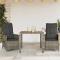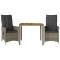 Ensemble de bistro 3 pcs avec coussins gris résine tresséeSavourez un café ou discutez avec votre famille et vos amis dans le jardin, l'arrière-cour ou sur le balcon avec cet ensemble de bistro confortable ! Matériau durable : la résine tressée, également connue sous le nom de poly rotin, est un matériau synthétique solide et nécessitant peu d'entretien qui ressemble au rotin naturel. Il est léger, facile à nettoyer et couramment utilisé pour les meubles d'extérieur en raison de sa durabilité et de ses propriétés de résistance aux intempéries. Dossier réglable : ce siège de jardin est doté d'une poignée. Vous pouvez régler le dossier dans n'importe quelle position en tirant sur la poignée et le remettre rapidement dans sa position initiale. Dessus stable et facile à nettoyer : cette table de jardin a un dessus en bois d'acacia robuste, durable et facile à nettoyer avec un chiffon humide. Expérience d'assise confortable : cet ensemble de meubles d'extérieur, doté de coussins épais, offre une expérience d'assise confortable. Housse amovible et lavable : ces coussins de siège sont dotés de housses amovibles pour un lavage et un entretien faciles. Les coussins de dossier ont un rabat à l'arrière pour une fixation facile aux dossiers. Bon à savoir : Pour que vos meubles d'extérieur restent beaux, nous vous recommandons de les protéger avec une housse imperméable.