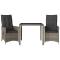 Ensemble de bistro 3 pcs avec coussins gris résine tresséeSavourez un café ou discutez avec votre famille et vos amis dans le jardin, l'arrière-cour ou sur le balcon avec cet ensemble de bistro confortable ! Matériau durable : la résine tressée, également connue sous le nom de poly rotin, est un matériau synthétique solide et nécessitant peu d'entretien qui ressemble au rotin naturel. Il est léger, facile à nettoyer et couramment utilisé pour les meubles d'extérieur en raison de sa durabilité et de ses propriétés de résistance aux intempéries. Dossier réglable : ce siège de jardin est doté d'une poignée. Vous pouvez régler le dossier dans n'importe quelle position en tirant sur la poignée et le remettre rapidement dans sa position initiale. Dessus en verre : le dessus de la table d'extérieur est fabriqué en verre trempé solide et durable, ce qui le rend facile à nettoyer avec un chiffon humide et ajoute une touche d'élégance à votre espace extérieur. Expérience d'assise confortable : cet ensemble de meubles d'extérieur, doté de coussins épais, offre une expérience d'assise confortable. Housse amovible et lavable : ces coussins de siège sont dotés de housses amovibles pour un lavage et un entretien faciles. Les coussins de dossier ont un rabat à l'arrière pour une fixation facile aux dossiers. Bon à savoir : Pour que vos meubles d'extérieur restent beaux, nous vous recommandons de les protéger avec une housse imperméable.