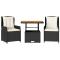 Ensemble de bistro 3 pcs avec coussins noir résine tresséeSavourez un café ou discutez avec votre famille et vos amis dans le jardin, l'arrière-cour ou sur le balcon avec cet ensemble de bistro confortable ! Matériau durable : la résine tressée, également connue sous le nom de poly rotin, est un matériau synthétique solide et nécessitant peu d'entretien qui ressemble au rotin naturel. Il est léger, facile à nettoyer et couramment utilisé pour les meubles d'extérieur en raison de sa durabilité et de ses propriétés de résistance aux intempéries.Dossier réglable : ce siège de jardin est doté d'une poignée. Vous pouvez régler le dossier dans n'importe quelle position en tirant sur la poignée et le remettre rapidement dans sa position initiale.Housse amovible et lavable : le coussin de siège est doté d'une housse amovible pour un lavage et un entretien faciles.Dessus de table réglable : le dessus de table peut être soulevé pour rendre la table plus haute, ce qui transforme la table d'extérieur d'une table basse à une table de salle à manger. Elle est parfaite pour recevoir des invités ou prendre des repas à l'extérieur.Dessus stable et facile à nettoyer : cette table de jardin a un dessus en bois d'acacia robuste, durable et facile à nettoyer avec un chiffon humide. Bon à savoir :Pour que vos meubles d'extérieur restent beaux, nous vous recommandons de les protéger avec une housse imperméable. Maximum 110 kg par siège. Soyez conscient du risque de feu ouvert et d'autres sources de forte chaleur à proximité de l'appareil.