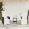 Ensemble de bistro 3 pcs avec coussins noir résine tresséeSavourez un café ou discutez avec votre famille et vos amis dans le jardin, l'arrière-cour ou sur le balcon avec cet ensemble de bistro confortable ! Matériau durable : la résine tressée, également connue sous le nom de poly rotin, est un matériau synthétique solide et nécessitant peu d'entretien qui ressemble au rotin naturel. Il est léger, facile à nettoyer et couramment utilisé pour les meubles d'extérieur en raison de sa durabilité et de ses propriétés de résistance aux intempéries.Dossier et repose-pied réglables : ce siège de jardin est doté d'une poignée. Vous pouvez régler le dossier et le repose-pied dans n'importe quelle position en tirant sur la poignée. Vous pouvez également remettre rapidement le dossier et le repose-pieds dans leur position initiale avec la poignée.Expérience d'assise confortable : cet ensemble de meubles d'extérieur, doté de coussins épais, offre une expérience d'assise confortable.Housse amovible et lavable : ces coussins de siège sont dotés de housses amovibles pour un lavage et un entretien faciles. Les coussins de dossier ont un rabat à l'arrière pour une fixation facile aux dossiers.Cadre robuste et stable : le cadre en acier enduit de poudre assure la solidité et la stabilité du meuble de jardin pour une utilisation quotidienne à l'extérieur. Bon à savoir :Pour que vos meubles d'extérieur restent beaux, nous vous recommandons de les protéger avec une housse imperméable.