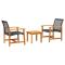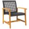 Ensemble de bistro 3 pcs noir résine tressée et bois d'acaciaSavourez un café ou discutez avec votre famille et vos amis dans le jardin, l'arrière-cour ou sur le balcon avec cet ensemble de bistro confortable ! Matériau durable : la résine tressée, également connue sous le nom de poly rotin, est un matériau synthétique solide et nécessitant peu d'entretien qui ressemble au rotin naturel. Il est léger, facile à nettoyer et couramment utilisé pour les meubles d'extérieur en raison de sa durabilité et de ses propriétés de résistance aux intempéries. Expérience de siège confortable : doté d'un dossier de soutien et d'accoudoirs en bois, le siège de jardin vous offre le plus grand confort. Cadre robuste et stable : le cadre en métal et en bois assure la solidité et la stabilité du meuble de jardin pour une utilisation quotidienne à l'extérieur. Table stable et facile à nettoyer : la table de jardin est fabriquée en bois d'acacia massif, robuste, durable et facile à nettoyer avec un chiffon humide. Bon à savoir : Pour que vos meubles d'extérieur restent beaux, nous vous recommandons de les protéger avec une housse imperméable. Maximum 110 kg par siège. ,