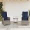 Ensemble bistro 3 pièces avec coussins en polyrotin grisSavourez un café ou discutez avec votre famille et vos amis dans le jardin, dans votre cour ou sur le balcon avec cet ensemble bistro confortable ! Matériau durable : le rotin PE, également connu sous le nom de polyrotin, est un matériau synthétique solide et facile d'entretien qui ressemble au rotin naturel. Il est léger, facile à nettoyer et couramment utilisé pour le mobilier d'extérieur en raison de sa durabilité et de sa résistance aux intempéries. Dossier réglable : ce siège de jardin est doté d'une poignée. Vous pouvez régler le dossier dans n'importe quelle position en tirant sur la poignée et le remettre rapidement dans sa position initiale. Assise confortable : cet ensemble de mobilier d'extérieur, doté de coussins épais et rembourrés, offre une assise confortable. Housse amovible et lavable : ces coussins d'assise sont dotés de housses amovibles pour un lavage et un entretien faciles. Les coussins de dossier sont dotés d'un rabat à l'arrière pour une fixation facile aux dossiers. Cadre robuste et stable : le cadre en acier thermolaqué garantit la solidité et la stabilité du mobilier de jardin pour une utilisation quotidienne en extérieur. Bon à savoir : Pour que votre mobilier d'extérieur reste beau, nous vous recommandons de le protéger avec une housse imperméable.