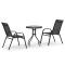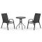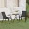 Ensemble de bistro de jardin 3 pcs NoirCet élégant ensemble de bistro de jardin est conçu pour être le point central de votre jardin ou patio. C'est un excellent choix pour vous détendre dans les espaces extérieurs ! Matériau durable : grâce au tissu textilène résistant à l'eau et respirant, les chaises de jardin sont résistantes à l'usure, faciles à entretenir et convient à un usage quotidien à l'extérieur. Cadre robuste : Les cadres en acier assurent robustesse et stabilité. Dessus de table stable : fabriqué en verre trempé, le dessus de cette table de jardin est idéal pour exposer des objets décoratifs, une tasse de café ou des plantes en pot, etc. Remarque : Afin de prolonger la durée de vie de votre mobilier d'extérieur, nous vous recommandons de le protéger avec une housse imperméable. Maximum 110 kg par siège.