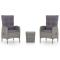 Ensemble de bistro de jardin 3 pcs Résine tressée et verre GrisCet élégant ensemble de bistro de jardin est destiné à être le point de mire de votre jardin ou patio ! C'est un excellent choix pour vous détendre dans les espaces extérieurs ! Les cadres en acier enduit de poudre rendent la table et les chaises solides. Grâce à leurs constructions légères, tous les articles sont faciles à déplacer. La résine tressée résistante aux intempéries et le dessus en verre sont faciles à nettoyer avec un chiffon humide. Les fauteuils sont conçus avec des dossiers incurvés et des accoudoirs pour un confort maximal. Les coussins sont inclus pour un soutien supplémentaire et la housse à fermeture éclair est amovible pour faciliter le lavage. Maximum 110 kg par siège. Soyez conscient du risque de feu ouvert et d'autres sources de forte chaleur à proximité de l'appareil.