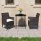 Ensemble de bistro de jardin 3 pcs poly rotin et verre trempéUn jardin monotone ? Égayez-le avec notre ensemble de bistro de jardin de 3 pièces et rendez l'extérieur de votre maison tout aussi accueillant que l'intérieur ! Il est idéal pour le petit balcon, la terrasse, la cour arrière, la véranda et tout autre espace extérieur. Dotées d'un cadre en acier enduit de poudre recouvert de résine tressée résistante aux intempéries avec protection UV, la table et les chaises sont durables et stables. Les chaises sont conçues dans une forme plus ergonomique pour un confort maximum. Des coussins sont inclus pour plus de soutien. Le dessus de table est fabriqué en verre trempé renforcé avec support fort, facile à nettoyer et à entretenir. Lorsqu'elle n'est pas utilisée, la table d'extérieur peut être facilement repliée pour économiser de l'espace. Maximum 110 kg par siège. Soyez conscient du risque de feu ouvert et d'autres sources de forte chaleur à proximité de l'appareil.