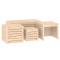 Ensemble de boîtes de jardin 4 pcs bois de pin massifCet ensemble de boîtes de jardin en bois vous offre beaucoup d'espace pour ranger vos outils et autres utilitaires. Bois de pin massif : le bois de pin massif est un beau matériau naturel. Le bois de pin a un grain droit et les noeuds lui confèrent un aspect rustique caractéristique. Les meubles de terrasse sont fabriqués en bois de pin massif, ce qui les rend robustes et stables. Grand espace de rangement : le mobilier de jardin offre un grand espace de rangement pour les coussins, les jouets des enfants, les outils de jardinage et d'autres accessoires, tout en gardant le contenu organisé. Couvercle pratique : les boîtes de rangement d'extérieur sont dotées d'un couvercle, qui empêche la poussière de s'accumuler sur les objets et renforce la sécurité. Utilisation polyvalente : les boîtes de rangement de jardin peuvent être utilisées non seulement pour le rangement, mais aussi comme sièges ou tables de terrasse. Remarque : Pour que vos meubles d'extérieur restent beaux, nous vous recommandons de les protéger avec une housse imperméable. Maximum 110 kg par siège.