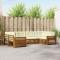 Ensemble de canapé de jardin 6 pcs Beige Poly rotinCe canapé de jardin moderne est vraiment incontournable pour toute terrasse ou jardin. Avec un design soigné et élégant, il allie simplicité et fonctionnalité. Ses lignes épurées s'harmonisent super bien avec la nature, créant un coin lounge extérieur tranquille et stylé. Idéal pour vos soirées au printemps ou en été, cet ensemble apporte une ambiance cool pour se détendre ou passer du temps ensemble au grand air. Excellence en poly rattan L'ensemble a une allure super sympa grâce au poly rattan, connu pour sa beauté et sa solidité. Ce matériau léger est top contre les UV et l'humidité, assurant que votre mobilier résiste aux caprices du temps tout en gardant son style pendant plusieurs saisons. Cadre en acier enduit de poudre La structure solide de l'ensemble repose sur un cadre en acier enduit de poudre, qui assure une stabilité dingue. Il protège aussi contre la rouille, prolongeant sa vie tout en gardant un style moderne. Ce cadre discret s'intègre bien dans les lignes épurées de la déco contemporaine. Acacia massif et rangement Avec son plateau en acacia massif, la table de jardin apporte une touche naturelle qui résiste au temps. De plus, des rangements astucieux dans les bancs et ottomans permettent de garder vos essentiels à portée de main, alliant style et praticité. Confort avec innovation Grâce à des coussins amovibles en polyester, cet ensemble de canapés offre un confort décontracté. Les coussins ont une fermeture éclair pour faciliter le nettoyage. Avec un design ergonomique, vous serez bien assis. Conseils d'entretien pratiques Protégez votre ensemble quand le temps se gâte : utilisez des housses lorsqu'il n'est pas en service. Cela assure une bonne longévité et garde votre ensemble aussi beau que le jour de l'achat. ,