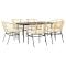 Ensemble de canapé de jardin 6 pcs Noir et Crème polyrotinCet ensemble de canapés de jardin modulaires allie confort extérieur et beau design contemporain. Idéal pour terrasses et jardins, son style moderne se marie facilement avec n'importe quel environnement. Avec ses lignes nettes et son look minimaliste, il est autant esthétique que pratique, parfaitement adapté pour diverses configurations. Que ce soit pour des rassemblements ou une pause tranquille, cet ensemble assure un confort optimal, et en fait un choix top pour se détendre. Matériaux de qualité : Fabriqué en poly rattan haut de gamme et en bois d'acacia massif. Le poly rattan résiste bien aux intempéries et assure un mobilier extérieur durable, tandis que la table en bois d'acacia massif offre une surface stable et stylée. Composants bien pensés : Comprend un dossier joli et rembourrage en mousse super confortable. Les canapés latéraux, sièges centraux et le pouf offrent diverses options de seating, et la table marron complète l'aspect naturel. Design pratique : Ce canapé modulable peut se configurer de plusieurs façons, s'adaptant facilement à l'extérieur grâce à des composants fonctionnels et élégants. Utilisation versatile : Parfait pour jardins et terrasses, cet ensemble est uniquement pour l'extérieur, avec des caractéristiques résistantes aux intempéries qui gardent son look et sa praticité. Entretien simplifié : Pour le préserver, pensez à utiliser des housses quand il n'est pas utilisé, ce qui protège contre les conditions météo extrêmes et prolonge sa durabilité. ,