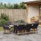 Ensemble de canapé de jardin 7 pcs Gris clair Poly rotinLe canapé de jardin avec coussins a été pensé pour la simplicité moderne. Ses lignes épurées et son look minimaliste le rendent super tendance pour n'importe quel jardin ou patio. Tu bénéficies d'un bon équilibre entre confort et fonctionnalité, parfait pour les moments entre amis ou se relaxer. Cet ensemble est flexible et stylé, s'adaptant à tous les espaces extérieurs pour que tout le monde puisse savourer son confort. Tu peux facilement reconfigurer le tout selon tes besoins, ce qui en fait le choix top pour toutes les occasions. Ce canapé de jardin, ce n'est pas que pour le style ; il a aussi des coussins imperméables et un rangement intégré pour une super expérience d'extérieur. Matériaux : Fait en poly rotin robuste, ce canapé de jardin résiste à tout type de météo. Le tissage en poly rotin stylé apporte une touche chic, que ce soit dans un petit jardin ou sur un grand patio. Les cadres en acier recouvert de poudre le rendent solide et esthétique pour longtemps. Tu obtiens donc durabilité et élégance qui s'associent aussi bien aux jardins modernes qu'aux classiques. Composants Inclus : L'ensemble comprend des coussins en polyester résistants aux intempéries, parfaits pour chiller à l'extérieur. Chaque coussin est soutenu par un cadre en acier recouvert de poudre et du poly rotin, alliant confort et style sans effort. Les pieds ajustables simplifient le nivelage, te donnant une mise en place stable peu importe le sol. Tout est pensé pour améliorer ton confort et l'utilisation, transformant ton extérieur en un coin relaxant. Caractéristiques / Fonction / Design : Tu peux adapter cet ensemble modulable à n'importe quel agencement extérieur. Que tu sois allongé, à table ou à rigoler avec des amis, son design flexible te propose plein d'options. Les pieds ajustables s'assurent que ça reste stable même sur des surfaces irrégulières, et le rangement intégré est super pratique pour garder ton espace extérieur rangé. Utilisations Recommandées : Idéal pour les jardins, patios et espaces extérieurs, cet ensemble apporte du style et de la fonctionnalité, des coins douillets aux grandes terrasses. C'est fait pour le fun à l'extérieur, donnant un coin confortable et stylé pour accueillir tes invités ou profiter d'un moment tranquille en solo. Entretien et Maintenance : Pour garder tes meubles en très bon état, utilise une housse quand tu ne les utilises pas et rentre les coussins quand le temps n'est pas top. Un petit coup de chiffon sec et éviter les produits chimiques trop forts aidera à garder l'aspect au top. Ces simples gestes garantiront que ce beau meuble reste un incontournable de ton extérieur. ,