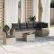 Ensemble de canapé de jardin Gris polyrotinCe canapé de jardin moderne combine un design contemporain avec une fonctionnalité pratique, ce qui le rend idéal pour tout espace extérieur. Ses lignes épurées et son look minimaliste en font un cadre parfait pour recevoir des amis ou se relaxer seul. Fait de poly rattan et d'acier, il est conçu pour durer et facile à entretenir, ce qui lui permet de résister à un été chaud tout en gardant son charme. Matériaux robustes : Fabriqué en poly rattan résistant et en acier revêtu, ce canapé de jardin est fait pour durer. Les matériaux choisis résistent bien aux intempéries et ne se décolorent pas facilement, garantissant qu'il garde sa belle apparence au fil du temps. Accoudoirs courbés : Les accoudoirs légèrement courbés offrent du confort et un look stylé. Le design ergonomique favorise une position assise relaxante, parfait pour profiter du soleil. Design modulaire : Grâce aux sections modulaires, tu peux agencer le canapé comme tu veux, selon ton espace et tes goûts. Chaque partie peut être facilement déplacée ou ajoutée selon tes besoins, s'adaptant sans effort aux différentes occasions. Caractéristiques de confort : Avec ses coussins en polyester, le canapé assure une assise agréable. Les housses des coussins sont amovibles et lavables, ce qui rend l'entretien super simple et garde le tout frais. Entretien pratique : Ce canapé demande peu d'entretien ; un coup de chiffon humide suffit pour le garder en bon état. Utilise une housse lors des intempéries pour prolonger sa durée de vie et profiter d'années de confort. ,