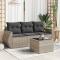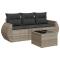 Ensemble de canapé de jardin avec coussin 7 pcs Gris polyrotinCe set de canapés de jardin modulaire est fait pour allier style et praticité dans votre extérieur. Son design moderne offre une vraie oasis de détente, que ce soit dans votre jardin ou sur votre patio. Avec ses lignes épurées et sa vibe minimaliste, cet ensemble transforme vos moments en plein air, que ce soit pour des après-midis tranquilles ou des rencontres entre amis. Son allure chic en fait un point focal qui se marie parfaitement avec la nature. Matériau poly rattan Ce set est fabriqué en poly rattan de qualité, ce qui lui donne une durabilité incroyable et un look esthétique. Il résiste aux UV, à l'humidité et à l'usure, garantissant qu'il reste beau et fonctionnel avec le temps. Le tissage fait main lui apporte une touche d'élégance qui s'intègre bien aux styles modernes. Composants fonctionnels Le set comprend cinq pièces : deux sièges centraux, un siège d'angle, deux canapés avec accoudoirs et une table de jardin. Chaque élément est pensé pour le confort et la praticité, vous permettant de les organiser comme vous le souhaitez. La table en acacia massif ajoute une note naturelle et chaleureuse. Configuration modulaire Grâce à sa modularité, vous pouvez réorganiser les sièges comme bon vous semble, selon vos envies ou l'occasion. C'est parfait pour ceux qui aiment changer leur style extérieur. Utilisations recommandées Idéal pour le printemps et l'été, ce set trouve sa place dans les jardins, patios et terrasses. Avec son look élégant, il embellit vos rassemblements ou vos moments de paix dans la nature. Entretien simple Pour garder ce set au top, mettez une housse quand vous ne l'utilisez pas. Un chiffon sec suffit pour dépoussiérer, ce qui permet de le garder propre et accueillant pendant des années. ,