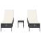 Ensemble de chaises longues avec coussins 3 pcs noir poly rotinDétendez-vous et profitez du plein air avec cet ensemble de chaises longues confortables ! Matériau durable : la résine tressée, également connue sous le nom de poly rotin, est un matériau synthétique solide et nécessitant peu d'entretien qui ressemble au rotin naturel. Il est léger, facile à nettoyer et couramment utilisé pour les meubles d'extérieur en raison de sa durabilité et de ses propriétés de résistance aux intempéries. Dossier réglables : ce meuble d'extérieur est doté d'un dossier à 5 positions réglables, ce qui vous permet de trouver facilement la position la plus confortable et la plus appropriée pour la détente. Expérience d'assise confortable : ce mobilier d'extérieur, doté de coussins épais, offre une expérience d'assise confortable. Housse amovible et lavable : Ce coussin de siège est doté d'une housse amovible pour un lavage et un entretien faciles. Cadre robuste et stable : le cadre en acier enduit de poudre assure la solidité et la stabilité du meuble de jardin pour une utilisation quotidienne à l'extérieur. Bon à savoir : Pour que vos meubles d'extérieur restent beaux, nous vous recommandons de les protéger avec une housse imperméable. Maximum 110 kg par siège. Soyez conscient du risque de feu ouvert et d'autres sources de forte chaleur à proximité de l'appareil.