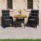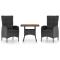 Ensemble à dîner de jardin 3 pcs Résine tressée et acacia NoirCet élégant ensemble de salle à manger de jardin est destiné à être le point de mire de votre jardin ou patio ! C'est un excellent choix pour manger en plein air ou vous détendre dans les espaces extérieurs ! Les cadres en acier enduit de poudre rendent la table et les chaises solides. Grâce à leurs constructions légères, tous les articles sont faciles à déplacer. La résine tressée résistante aux intempéries et le dessus en bois d'acacia avec une finition à l'huile sont faciles à nettoyer avec un chiffon humide. Les fauteuils sont conçus avec des dossiers incurvés et des accoudoirs pour un confort maximal. Les coussins sont inclus pour un soutien supplémentaire et la housse à fermeture éclair est amovible pour faciliter le lavage. Maximum 110 kg par siège. Soyez conscient du risque de feux ouverts et d'autres sources de forte chaleur à proximité du produit.