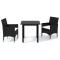 Ensemble à dîner de jardin avec coussins 3 pcs poly rotin noirCet ensemble de salle à manger de jardin est une combinaison parfaite de style et de fonctionnalité et est destiné à être le point de mire de votre jardin, balcon ou patio. Avec un cadre en acier robuste enveloppé de résine tressée résistante aux intempéries, les chaises de jardin sont à l'épreuve de la rouille et de la moisissure, offrant des années de détente de qualité. La table d'extérieur présente un dessus de table en verre aux lignes simples, facile à nettoyer et adapté à une utilisation en extérieur. Le cadre en aluminium assure également la stabilité et la robustesse. De plus, les coussins bien rembourrés offrent un confort ultime pendant votre temps assis. Cet ensemble de salle à manger de patio est facile à déplacer grâce à sa construction légère. Remarque : afin de prolonger la durée de vie des meubles d'extérieur, nous vous recommandons de les protéger avec une housse imperméable. Maximum 110 kg par siège. Soyez conscient du risque de feu ouvert et d'autres sources de forte chaleur à proximité de l'appareil.