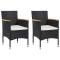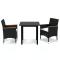 Ensemble à dîner de jardin avec coussins 3 pcs poly rotin noirCet ensemble de salle à manger de jardin est une combinaison parfaite de style et de fonctionnalité et est destiné à être le point de mire de votre jardin, balcon ou patio. Avec un cadre en acier robuste enveloppé de résine tressée résistante aux intempéries, les chaises de jardin sont à l'épreuve de la rouille et de la moisissure, offrant des années de détente de qualité. Les accoudoirs sont joliment décorés avec du bois d'acacia massif avec une finition à l'huile naturelle, ce qui apporte un sentiment de charme rustique. La table d'extérieur présente un dessus de table en verre aux lignes simples, facile à nettoyer et adapté à une utilisation à l'extérieur. Le cadre en aluminium assure également la stabilité et la robustesse. De plus, les coussins bien rembourrés offrent un confort ultime pendant votre temps assis. Cet ensemble de salle à manger de patio est facile à déplacer grâce à sa construction légère. Remarque : afin de prolonger la durée de vie des meubles d'extérieur, nous vous recommandons de les protéger avec une housse imperméable. Maximum 110 kg par siège. Soyez conscient du risque de feu ouvert et d'autres sources de forte chaleur à proximité de l'appareil.