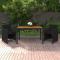 Ensemble à dîner de jardin avec coussins 3 pcs poly rotin noirCet ensemble de salle à manger de jardin, au design élégant et contemporain, sera un excellent choix pour manger ou vous détendre dans le jardin. Convient à un usage extérieur : fabriqué en résine tressée résistant aux intempéries et imperméable, cet ensemble repas d'extérieur est facile à nettoyer, résistant à l'usure et convient à un usage quotidien.Matériau de première qualité : le cadre en acier enduit de poudre rend la table et les chaises robustes et durables. Le dessus est fait de bois d'acacia massif avec une finition à l'huile naturelle, un bois dur tropical, résistant aux intempéries et très durable. Les coussins de siège et de dossier épais, doux et remplis de mousse ajoutent également un confort d'assise supplémentaire. Les housses de coussin amovibles et lavables sont équipées de fermetures à glissière.Design flexible : vous pouvez tirer le dossier vers le bas et ranger les chaises sous la table, économisant ainsi un espace de rangement précieux lorsque l'ensemble n'est pas utilisé. Grâce à sa conception légère, tous les articles sont faciles à déplacer. Remarque :Afin de prolonger la durée de vie de votre mobilier d'extérieur, nous vous recommandons de le protéger avec une housse imperméable. Maximum 110 kg par siège. Soyez conscient du risque de feu ouvert et d'autres sources de forte chaleur à proximité de l'appareil.