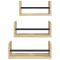 Ensemble d'étagères murales avec barres 3 pcs chêne sonomaMaximisez votre espace intérieur et donnez du style à votre mur avec cet ensemble d'étagères murales ! Matériau pratique : le bois d'ingénierie est d'une qualité exceptionnelle avec une surface lisse et se caractérise également par sa solidité, sa stabilité et sa résistance à l'humidité. Fabriquées en bois d'ingénierie, ces étagères flottantes sont faciles à nettoyer.Espace de rangement spacieux : les espaces de rangement des étagères murales facilitent l'organisation.Conception murale : ces étagères ne prennent pas de place au sol. Vous pouvez facilement les accrocher au mur.Barre multifonctionnelle : ces étagères murales flottantes sont dotées de barres en acier qui empêchent vos objets de tomber facilement. Lorsque vous suspendez l'étagère à l'envers, la barre avant peut être utilisée comme porte-serviettes. Bon à savoir :Les vis et les chevilles pour l'intérieur du mur ne sont pas incluses. Nous vous conseillons de trouver et d'utiliser des vis et des chevilles adaptées spécifiquement à vos murs. Si vous n'êtes pas sûr, vous pouvez consulter un professionnel. Veuillez lire et suivre chaque étape des instructions.