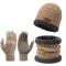 Ensemble hiver chaud 3 pièces bonnet doublé polaire gants écharpe Beige