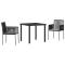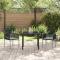 Ensemble de jardin de 3 pièces avec coussins, noir, en rattan polyuréthaneCet ensemble de chaises de jardin combine confort, style moderne et praticité, idéal pour se relaxer ou dîner à l'extérieur. Avec un cadre noir élégant et des coussins gris clair, elles sont faites pour donner du style à n'importe quel espace extérieur. Matériau Durable : Ces chaises sont faites en PE rotin de haute qualité, un matériau solide et facile à nettoyer, pour qu'elles restent belles longtemps. Assise Confortable : Chaque chaise a un coussin épais, ajoutant une touche agréable pour de longues assises, parfaites pour les rassemblements ou les repas. Aesthétique Moderne : Leur design tendance, avec une finition noire texturée, donne une touche chic à tout espace extérieur. Cadre Stable : Avec un cadre en acier enduit de poudre robuste, ces chaises offrent un bon soutien et une utilisation durable, convenant à tous sans sacrifier le confort. Entretien Facile : Un nettoyage simple avec un chiffon humide signifie que tu profites de tes chaises d'extérieur sans tracas, idéal pour les vies bien remplies. Maximum 110 kg par siège. Soyez conscient du risque de feux ouverts et d'autres sources de forte chaleur à proximité du produit.