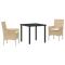 Ensemble de jardin 3 pièces avec coussins en poly rotin beigeCet ensemble de salle à manger de jardin, c'est le top pour les moments en extérieur. Avec son mélange de beige et de blanc crème et des coussins cozy, il donne une touche stylée à n'importe quel patio ou balcon. Cadre Costaud : Conçu avec un acier robuste et en plus noir mat, cet ensemble de salle à manger garantit une super durabilité, parfait pour l'extérieur. Coussins Douillets : Chaque chaise a des coussins moelleux et résistants aux intempéries pour rester confort lors de long repas ou discussions en extérieur. Attrait Moderne : Le design carré s'intègre parfaitement à diverses décorations extérieures, idéal pour jardins et balcons. Résistant aux Intempéries : Fabriqué avec des matériaux étanches, cet ensemble tient le coup face aux éléments, et les coussins amovibles se nettoient facilement. Taille Pratique : Spacieux mais assez compact pour balcons et petits patios, cet ensemble est parfait pour la vie en ville. Maximum 110 kg par siège. Soyez conscient du risque de feux ouverts et d'autres sources de forte chaleur à proximité du produit.