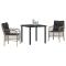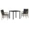 Ensemble de jardin 3 pièces avec coussins en poly rotin gris clairCe set de dîner de jardin a un style moderne, fabriqué avec du rattan poly gris clair chic, apportant une touche d'élégance à tout espace. Il est parfait pour les patios, balcons ou terrasses. Les chaises confortables et leurs coussins anthracite moelleux créent un coin sympa pour dîner ou se détendre. Sièges Confortables : Les coussins épais te garantissent un super confort pour dîner dehors ou juste te détendre. Tu peux passer des heures à l'extérieur avec tes amis ou ta famille sur ces chaises moelleuses. Durabilité : Fait en rattan PE de qualité, ce set de jardin est construit pour affronter la météo sans perdre son style. Ses propriétés résistantes aux intempéries assurent une plus longue durée de vie et peu d'entretien. Entretien Facile : Grâce aux housses de coussin amovibles et lavables, le nettoyage de ce set est super simple. Tu n'as qu'à dézipper, les mettre à laver, et ils seront propres en un rien de temps. Cadre Robuste : L'acier revêtu de poudre offre une base solide et stable, pour une utilisation sécurisée. Ce mix de matériaux garantit que le mobilier tiendra longtemps. Taille Idéale : Mesurant 58,5 x 67 x 86 cm, ce set s'intègre parfaitement dans des espaces restreints tout en offrant une vraie salle à manger. Son design adaptable est top pour tous les espaces extérieurs. Maximum 110 kg par siège. Soyez conscient du risque de feux ouverts et d'autres sources de forte chaleur à proximité du produit.