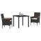Ensemble de jardin 3 pièces avec coussins en poly rotin noirCet ensemble de repas en 3 pièces est le mélange idéal de confort et de style pour des repas cosy en extérieur. Avec sa table rectangulaire et ses deux chaises confortables, il est parfait pour des repas sur ton balcon ou patio. Construction robuste : Le cadre en acier solide assure une longévité, quel que soit le temps. Finition noire élégante en poly rotin : Cet ensemble ajoute une touche stylée à ton extérieur. Confort rembourré : Les chaises sont équipées de coussins doux pour un repas agréable. Entretien facile : Conçu pour un nettoyage sans tracas, parfait pour un usage régulier en extérieur. Design compact : Parfait pour deux, idéal pour de petits rassemblements ou des repas privés. Maximum 110 kg par siège. Soyez conscient du risque de feux ouverts et d'autres sources de forte chaleur à proximité du produit.