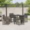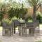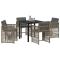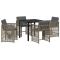 Ensemble de jardin 5 pièces avec coussins, gris, en poly rotin.Cet ensemble de salle à manger de jardin mélange style et praticité, parfait pour des repas ou des moments détente en extérieur. Avec quatre fauteuils confortables et une table solide, c'est l'idéal pour des dîners en famille ou juste traîner avec des amis. Ce set de jardin est fait en rattan PE robuste gris, qui donne un style extérieur super. Facile à entretenir, ta zone repas reste stylée et pratique longtemps. Les coussins gris foncé sont bien rembourrés, assurant un confort d'assise que tu sois en train de dîner ou de te relaxer dehors. Le tissu doux ajoute au plaisir de passer du temps à l'extérieur. Les dossiers pliables des chaises se rangent facilement, ce qui est super pratique si tu manques d'espace dehors. Avec un cadre en acier thermolaqué, ces chaises sont stables et fiables pour un usage quotidien dehors, prêtes pour tout ce que la météo peut apporter. Ce set combine esthétique et fonctionnalité, en faisant un choix parfait pour les patios, balcons ou jardins. Profite de repas ou moments détente à l'extérieur, en ayant l'assurance que tes meubles sont faits pour résister aux rassemblements.
