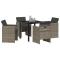 Ensemble de jardin 5 pièces avec coussins gris en rotin polyCet ensemble de salle à manger de jardin est tout pour le style et le confort, que tu sois sur le balcon ou dans le jardin. Le poly rattan gris associé à des coussins gris foncé donne du peps à n'importe quel espace extérieur pendant que tu profites de tes repas ou relaxes avec tes proches. Matériau solide : Fait en rattan PE, léger et simple à nettoyer, conçu pour durer à l'extérieur. Sa construction robuste garde son look au fil des années. Assise agréable : Chaque chaise a des coussins épais gris foncé pour un siège confortable, idéal pour se relaxer longtemps dehors. Rangement pratique : Avec des dossiers pliables, tu peux ranger les chaises facilement quand tu ne les utilises pas - super pour les petits espaces ou pour garder ton extérieur propre. Facilité d'entretien : Les housses de coussin se lavent en machine, donc ça rend le nettoyage super simple et ça garde ton extérieur au top. Cadre robuste : Le cadre en acier revêtu de poudre ajoute de la stabilité, supportant jusqu'à 110 kg par chaise pour une bonne expérience. Maximum 110 kg par siège. Soyez conscient du risque de feux ouverts et d'autres sources de forte chaleur à proximité du produit.