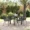 Ensemble de jardin de 5 pièces avec des coussins en poly rotin noir.Cet ensemble de chaises de jardin en rattan poly noir est un choix parfait pour ton espace extérieur, alliant style et confort. Avec un design moderne, ces chaises créent une ambiance sympa pour ton patio, balcon ou jardin. Durabilité : Les chaises en rattan PE sont connues pour leur solidité et leur résistance aux intempéries, parfaites pour une utilisation extérieure à long terme. Confort : Chaque chaise a des coussins épais qui rendent assis agréable même pendant des heures, idéales pour se relaxer. Stabilité : Avec un cadre en acier robuste, ces chaises offrent un bon soutien tout en ajoutant du style à ton espace extérieur. Entretien facile : Les housses de coussin sont amovibles et lavables, rendant le nettoyage simple et te permettant de garder les chaises fraîches. Design polyvalent : Parfaites pour tous types d'espaces comme balcons, patios ou jardins, ces chaises sont flexibles pour t'adapter à tes besoins sociaux. Maximum 110 kg par siège. Soyez conscient du risque de feux ouverts et d'autres sources de forte chaleur à proximité du produit.