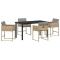 Ensemble de jardin 5 pièces avec coussins en polyrotin beige.Cet ensemble de dîner de jardin combine style moderne et sièges confortables, c'est un choix génial pour tout espace extérieur. Idéal pour des repas sympa en famille ou entre amis, avec des chaises accueillantes et une grande table pour rendre vos dîners plus agréables, que ce soit sur la terrasse, le balcon ou dans le jardin. Profitez du meilleur des dîners en extérieur avec une table solide et des sièges confortables. Fabriqué en rattan PE résistant aux UV, cet ensemble garde son allure même sous le soleil. Les chaises comportent des coussins épais pour une chouette expérience de dîner. Les chaises ont un dossier rabattable pratique pour se ranger facilement quand vous ne les utilisez pas. Les housses lavables des coussins rendent l'entretien un jeu d'enfant, maintenant l'ensemble toujours frais. Maximum 110 kg par siège. Soyez conscient du risque de feux ouverts et d'autres sources de forte chaleur à proximité du produit.