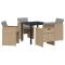 Ensemble de jardin 5 pièces avec coussins en rotin synthétique beige.Cet ensemble de salle à manger de jardin allie style et confort pour des moments en extérieur, idéal pour te relaxer sur ton balcon ou dans le jardin. Le mélange de rattan poly beige chic et de coussins gris clair lui donne une ambiance tendance, rendant les repas ou les pauses avec amis et famille super stylés. Matériau durable : Fabriqué en rattan PE, léger et facile à nettoyer, qui ressemble à du rattan naturel et est conçu pour durer à l'extérieur. Il est robuste, garantissant que tu auras un beau set pendant des années. Assise confortable : Chaque chaise a des coussins épais pour un confort au top, parfait pour de longues heures de détente en extérieur. Savoure chaque moment dans le jardin avec un confort unique. Rangement compact : Dossiers pliables facilitent le rangement des chaises quand tu ne les utilises pas, idéal pour les petits espaces ou si tu veux du pratique avec des meubles d'extérieur. Entretien simple : Les housses de coussin sont amovibles et lavables en machine, donc l'entretien est facile et garantit que ton espace extérieur reste toujours au top. Cadre robuste : Le cadre en acier revêtu de poudre ajoute de la solidité et de la stabilité, supportant jusqu'à 242,5 lb par chaise pour une expérience d'assise sûre et fiable. Maximum 110 kg par siège. Soyez conscient du risque de feux ouverts et d'autres sources de forte chaleur à proximité du produit.